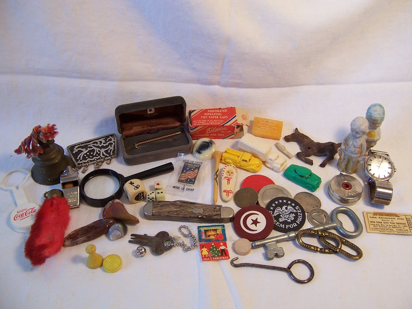 Title (ebay affiliate link): Vintage Antique Junk Drawer Lot Kniife Sterling Porcelain Dolls Coke Toys Tokens