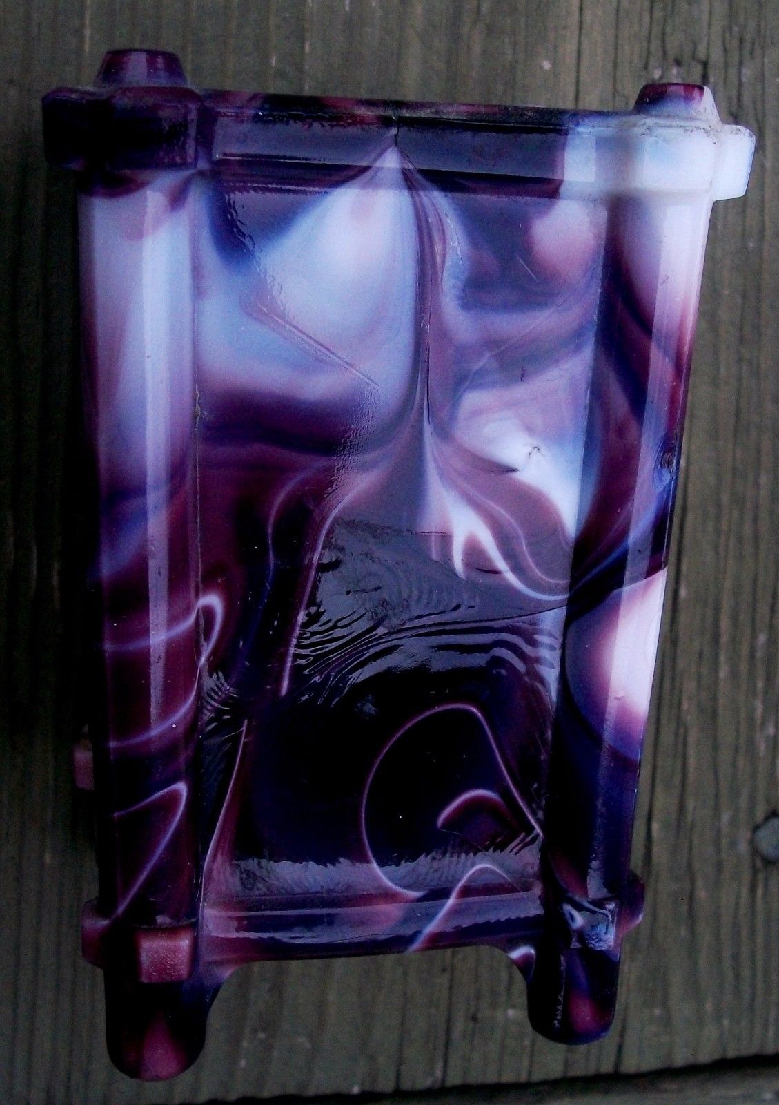 1890s Purple & White SLAG GLASS PEN QUILL HOLDER AKRO AGATE STYLE MARBLED GLASS