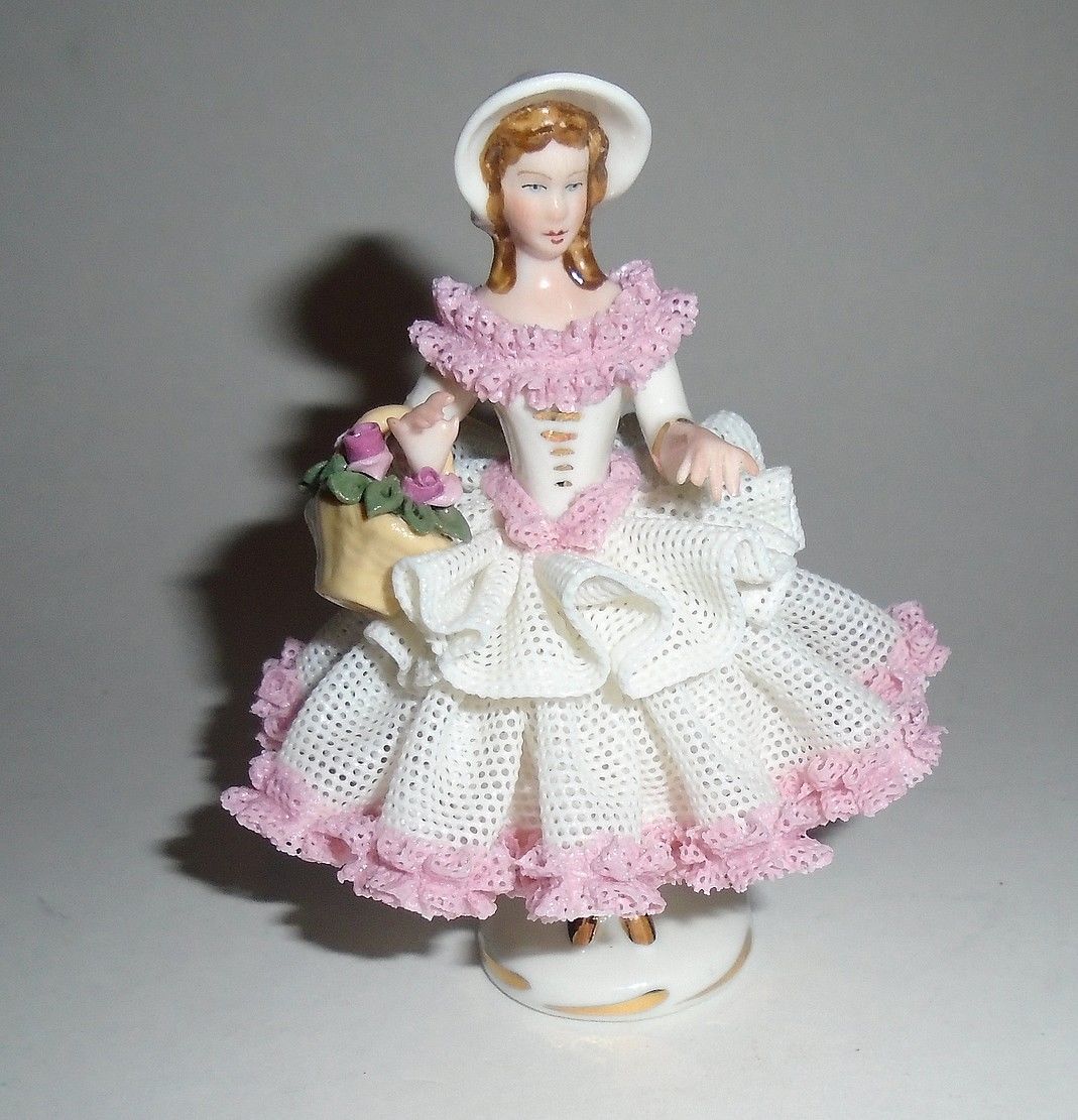 4-1/2" tall Dresden Germany Porcelain Lace Figurine