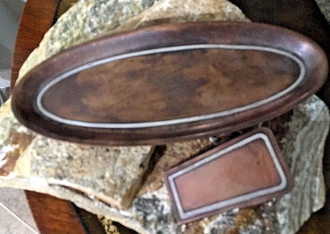 Title (ebay affiliate link): VINTAGE Heintz Sterling on Bronze Arts & Crafts Desk Set c.1912 Pen Tray/clip