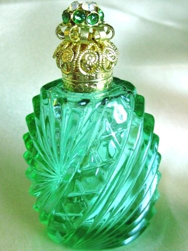 Title (ebay affiliate link): CZECH~PERFUME~OIL~BOTTLE~VINTAGE~VICTORIAN~DECO~GLASS~WEDDING~PERIDOT~EMERALD