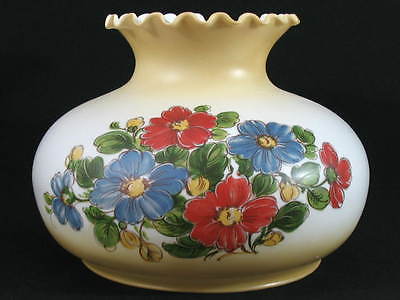 10" White Milk Glass Hurricane Table Lamp Shade with Floral Print Yellow''s / Red
