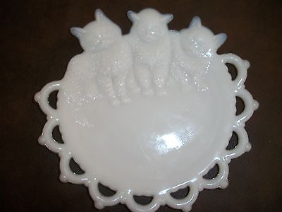 Vintage WESTMORELAND CAT Plate Milk Glass White Vanity Dish Cats Open Lace