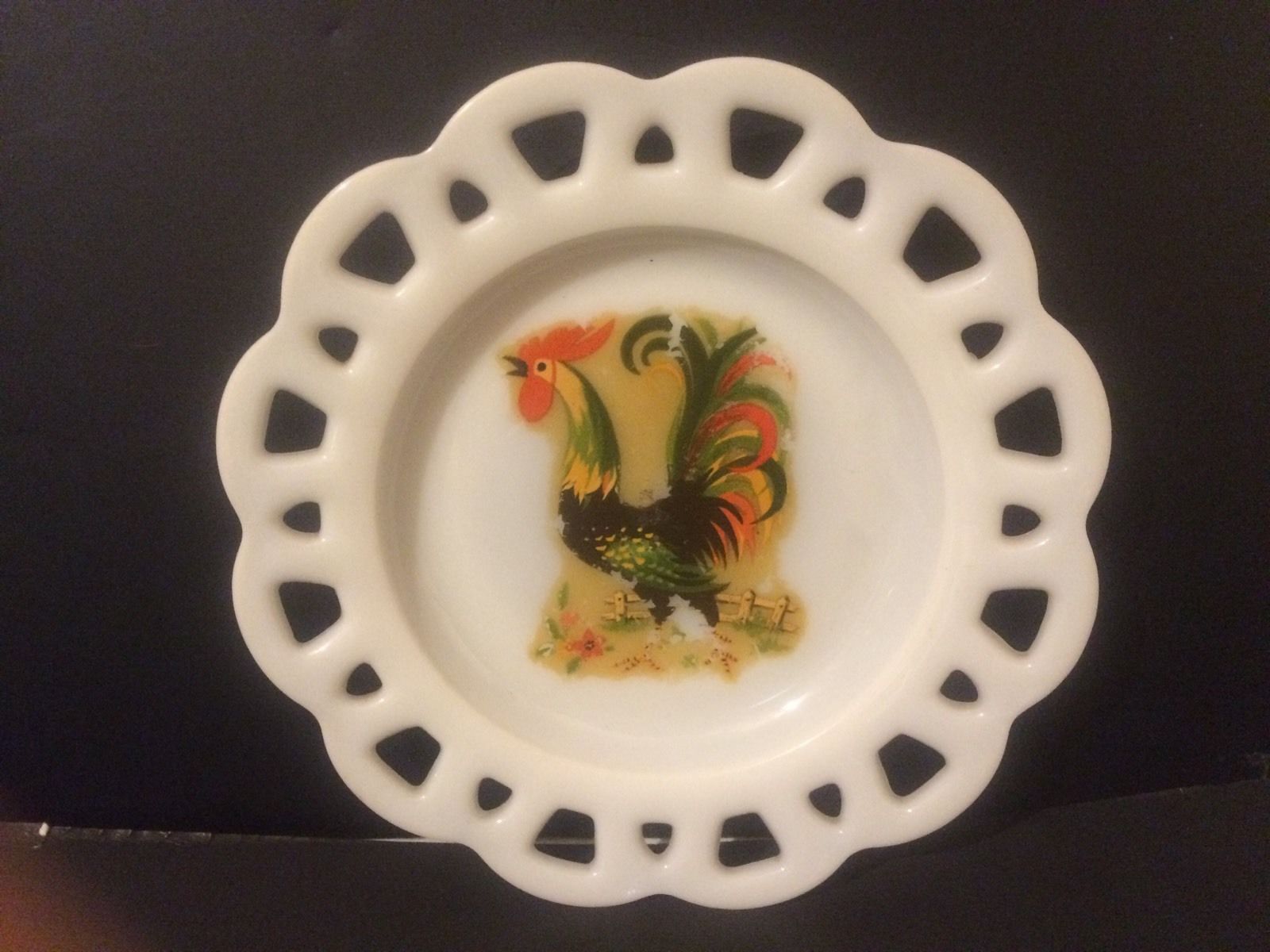 Title (ebay affiliate link): Vintage Anchor Hocking "ROOSTER" MILK GLASS Hand Painted Plate Collectible