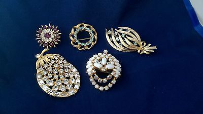 Title (ebay affiliate link): Vintage Rhinstone milk glass aurora borealis gold tone filigree brooch lot