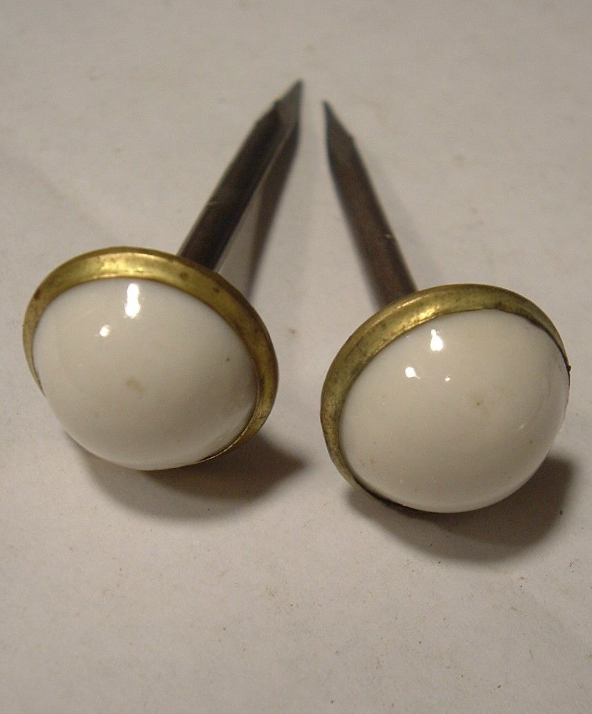 Title (ebay affiliate link): Pair Matching 2 Antique Brass Bezel Milk Glass Center Curtain Tie Backs #1