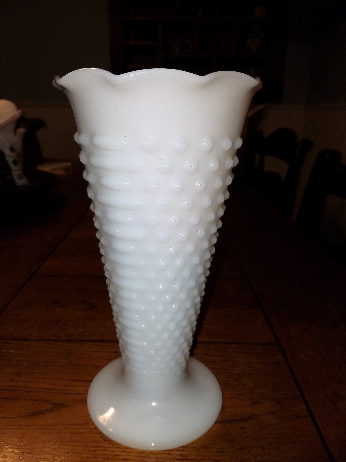 VINTAGE WHITE HOBNAIL MILK GLASS VASE 9.5" USED