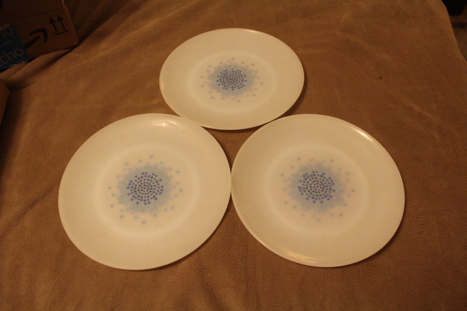 VTG Lot 3 ANCHOR HOCKING Fire King Milk Glass Blue Mosaic 10" Dinner Plates