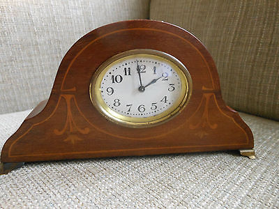 Antique Edwardian Oval Faced Inlaid Mahogany Mantle Clock