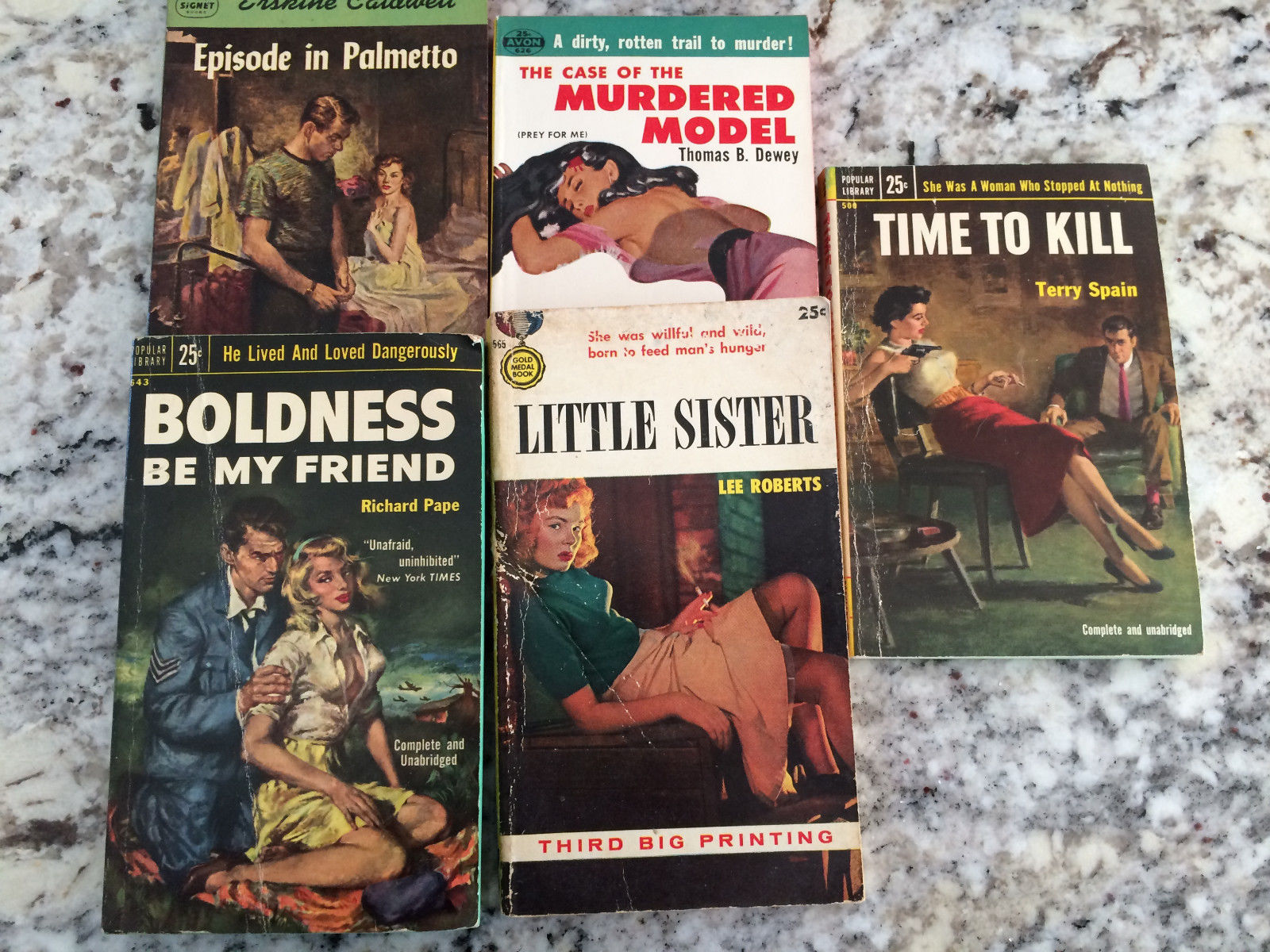 5 1950s Pulp 25C Mystery Paperbacks Avon 626 PopLib 500 643 Sig 983 Gold 565