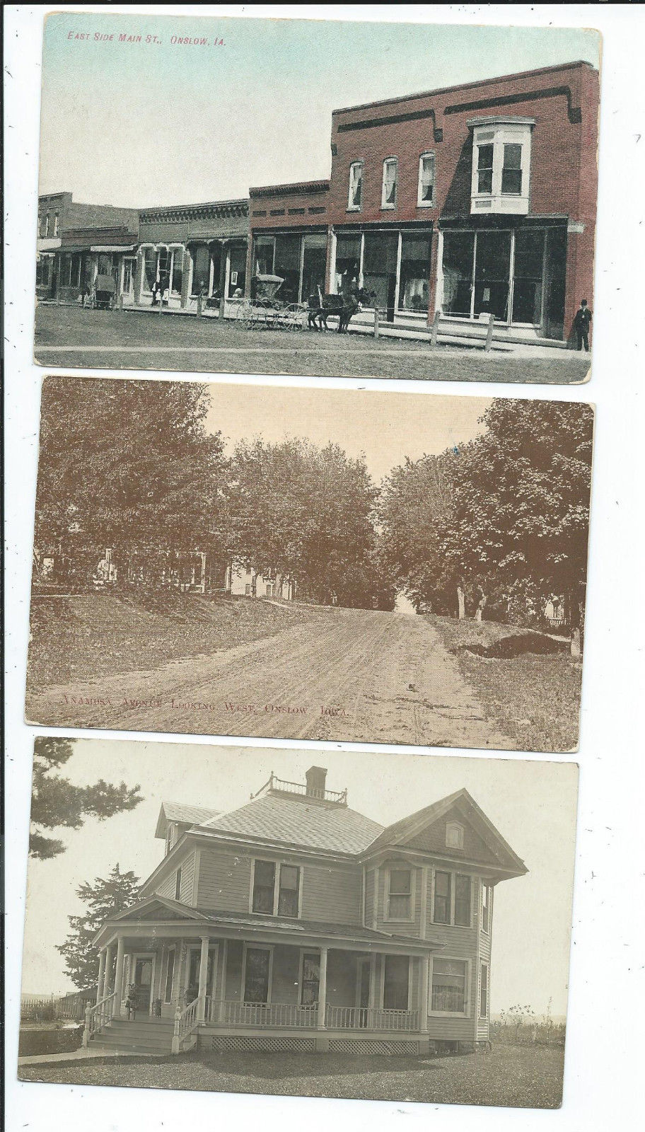 Title (ebay affiliate link): 3 RPPC & Printed Postcards Main Street House Onslow IA Iowa