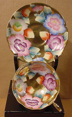 Title (ebay affiliate link): Heavy Gold Footed Occupied Japan Hand Painted Teacup & Saucer Trimont China