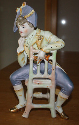 Made in Occupied Japan large vintage bisque porcelain lord seated PAULUX gold