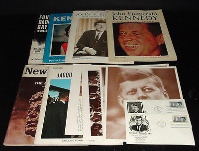 Title (ebay affiliate link): LQQK 12 vintage 1960s KENNEDY MEMORABILIA, magazines, photos, first day covers