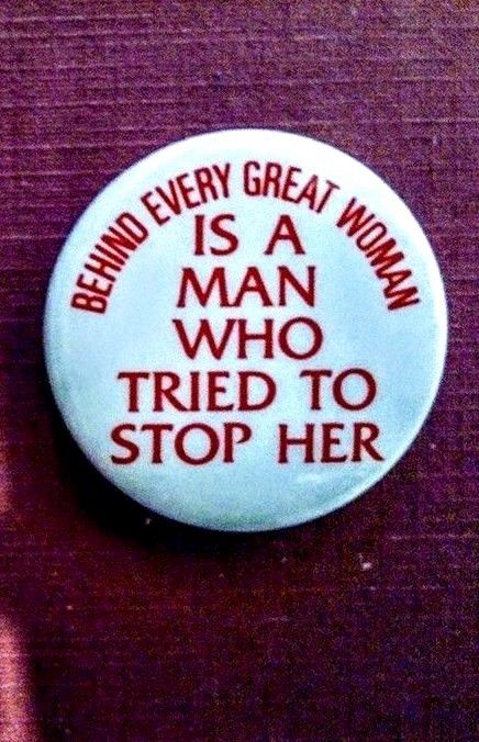 Title (ebay affiliate link): BEHIND EVERY GREAT WOMAN IS A MAN WHO TRIED TO STOP HER. 1968 Woman''s Lib button