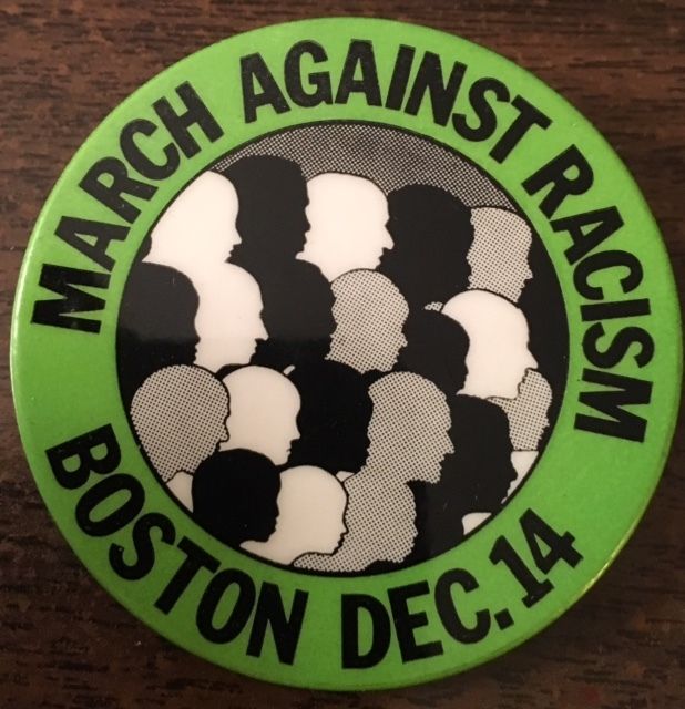 Title (ebay affiliate link): 2 1/4" March Against Racism Boston December 14 (1974) Cause Pinback Button