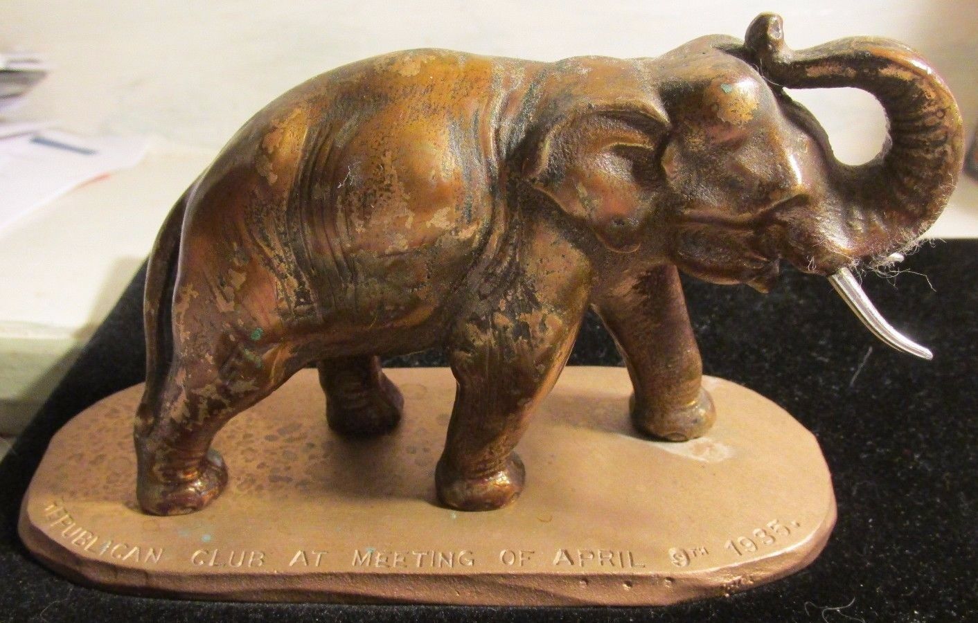 Title (ebay affiliate link): Vintage Bronze or Brass Elephant From Republican Club Meeting of April 9, 1935