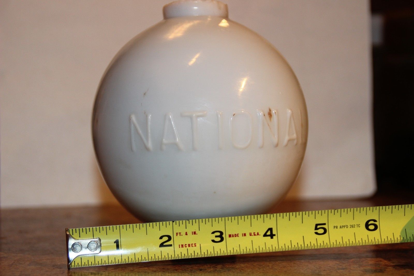 Title (ebay affiliate link): Vintage NATIONAL 4.5 Milk Glass Lightening Rod Globe. Nice shape.