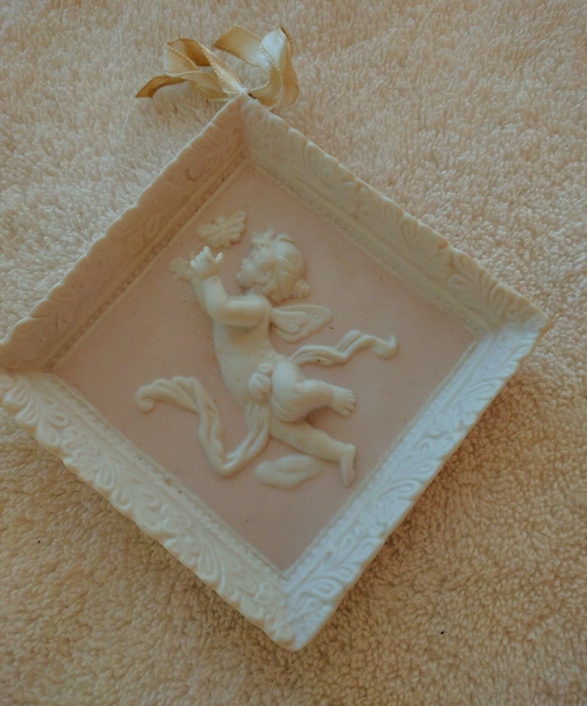 Vintage NAPCO 3D Ceramic Angel Plaque Wall Hanging Pink and White FREE SHIP!!