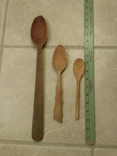 OLD ANTIQUE WOODEN SPOONS LOT OF 3