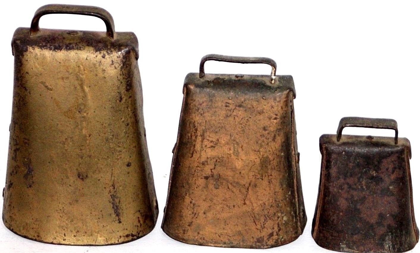 Title (ebay affiliate link): FANTASTIC COLLECTION OF 3 GRADUATED ANTIQUE FORGED PRIMITIVE COW / GOAT BELLS.