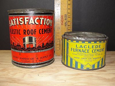 VINTAGE TIN LITHO SATISFACTION ROOF CEMENT CAN STOWS HARDWARE KC & FURNACE CAN