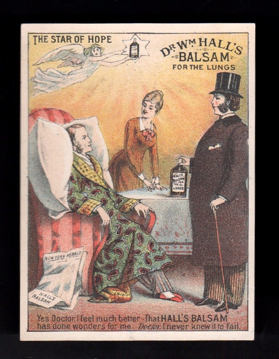RARE - 1870s VICTORIAN TRADE CARD - Dr Wm Hall''s Balsam - Star of Hope