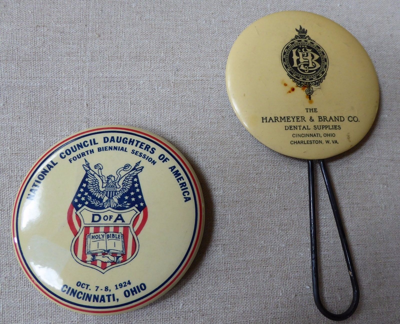 Celluloid Mirrors Daughters of America 1924 & Harmeyer & Brand Dental Cincinnati