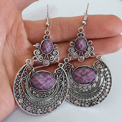 Title (ebay affiliate link): Vintage Bohemian Boho Antique Purple Oval Bead Dangle Hookie Hook 7.5cm Earrings