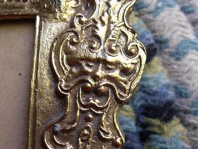 Fancy Vintage Brass Picture Frame Display Case Fan Shaped With Gargoyle Face
