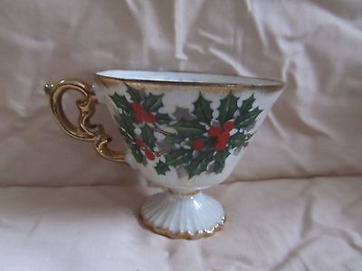 BEAUTIFUL VINTAGE DECEMBER HOLLY CHINA GLASS CUP WITH GOLD ACCENTS. MULTI-COLOR