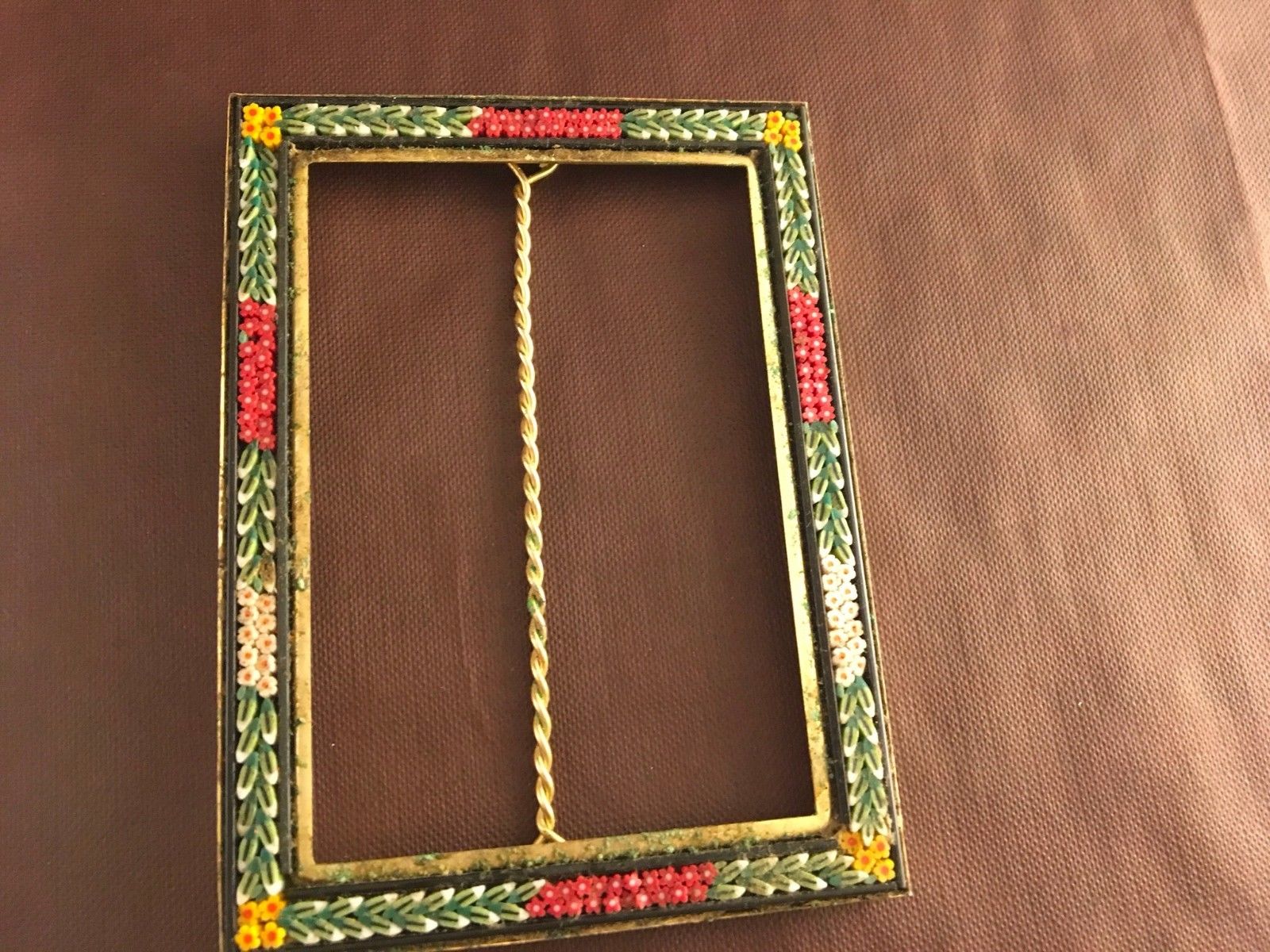 Vintage Miniature Micro Mosaic Brass Picture Frame Mille Foglie