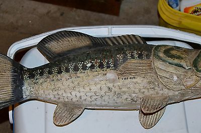 vintage realistic wooden fish not sure what kind has open mouth 19"x9"