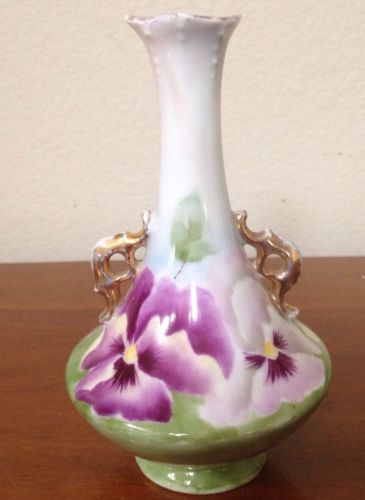 Title (ebay affiliate link): Antique Purple Pansy Flowers Hand Painted Signed Porcelain Bud Vase Handles
