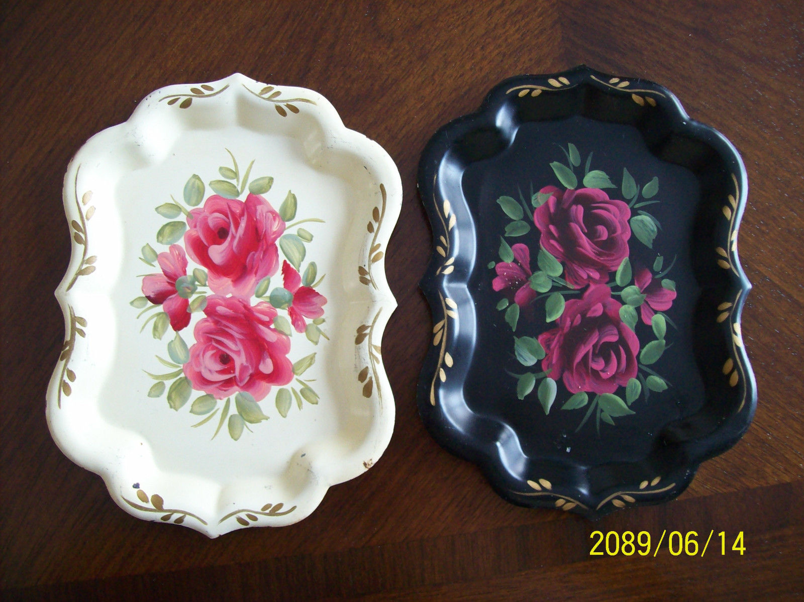 Title (ebay affiliate link): Collectible ( 2 ) Small Tin Tole Ware Hand Painted Roses Trays 7 3/4" x 5 1/2"