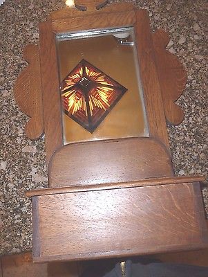 Title (ebay affiliate link): ANTIQUE DECORATIVE OAK WOOD BEVELED GLASS MIRROR AND ATTACHED OAK BOX