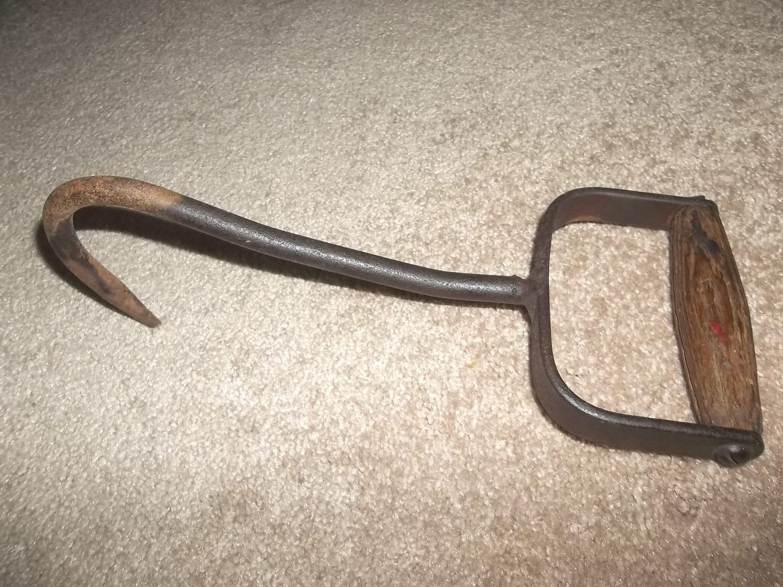 Title (ebay affiliate link): Antique Hay Bailing Hook with Wooden Hand Grip