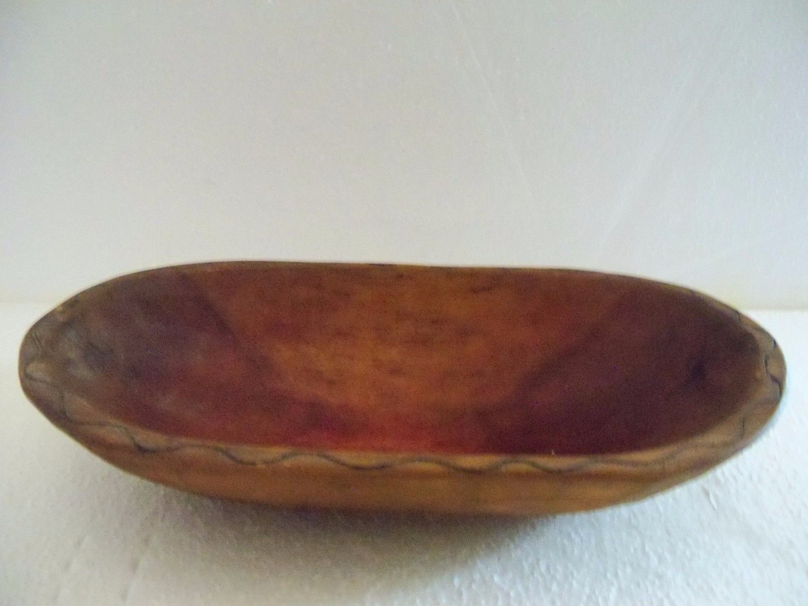 Title (ebay affiliate link): DOUGH BOWL~TRENCHER~Table Centerpiece-Primitive Decor~Hand Carved Wood