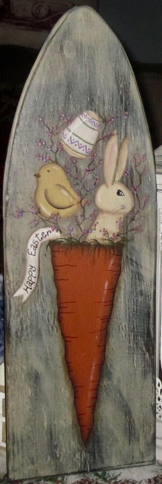 Title (ebay affiliate link): *~*PRIMITIVE*~* HP FOLK ART PRIM CARROT * CHICK * BUNNY * EGG *~* STRETCHER