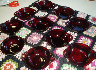 Title (ebay affiliate link): Royal Ruby Red Anchor Hocking Depression Glass Set 10