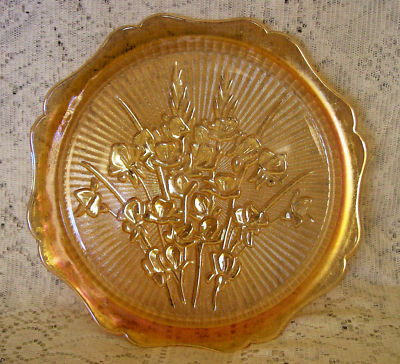 Title (ebay affiliate link): Iris and Herringbone Gold Carnival Glass 12" Platter