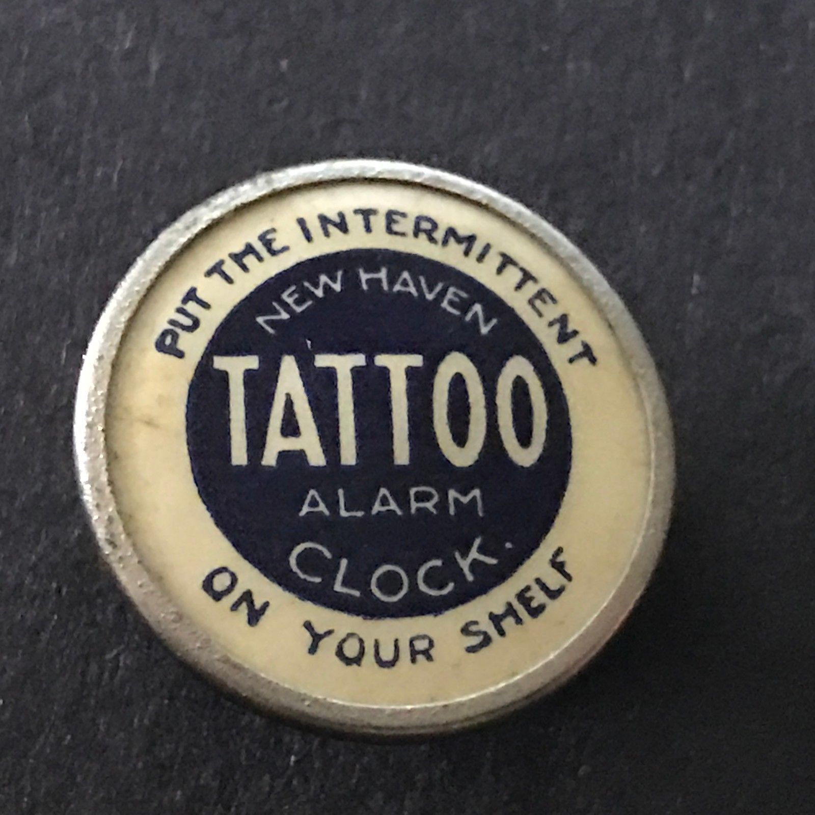 Title (ebay affiliate link): Antique Tattoo Alarm Clock Button 7/8" AMAZING CONDITION RARE!!