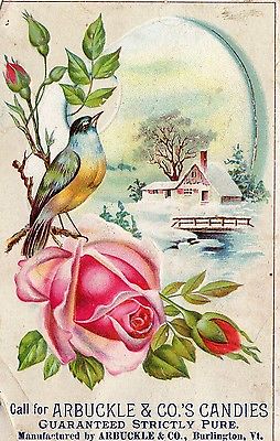 Title (ebay affiliate link): ARBUCKLE CO CANDIES -BURLINGTON VT - 1880-1893 VICTORIAN SCRAPBOOK TRADE CARD