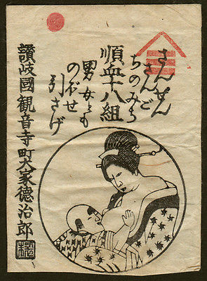 Title (ebay affiliate link): Vintage Japanese patent medicine envelope, mother, baby, kimono, revenue stamp.