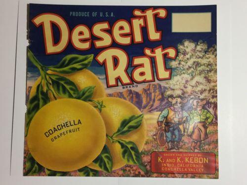 Title (ebay affiliate link): Desert Rat Brand Crate Label RARE ORIGINAL Coachella Valley Grapefruit Indio