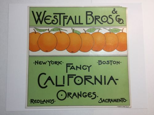 Title (ebay affiliate link): Westfall Bros Brand Crate Label RARE Orange Redlands Sacramento Boston New York