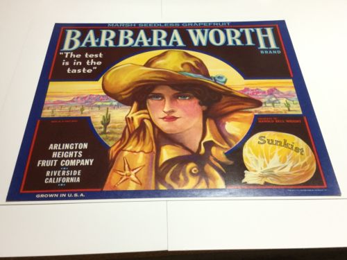 Title (ebay affiliate link): Barbara Worth Brand Crate Label RARE Original Arlington Riverside Grapefruit