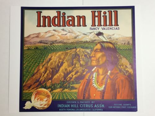 Indian Hill Brand Crate Label RARE Vintage Original North Pomona Los Angeles