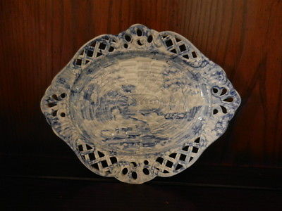Antique Spode ca 1810 blue/white embossed basket-weave oval dish