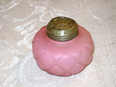 Lovely Pink Satin Glass Quilt Pattern Salt Shaker Muffineer Brass Lid